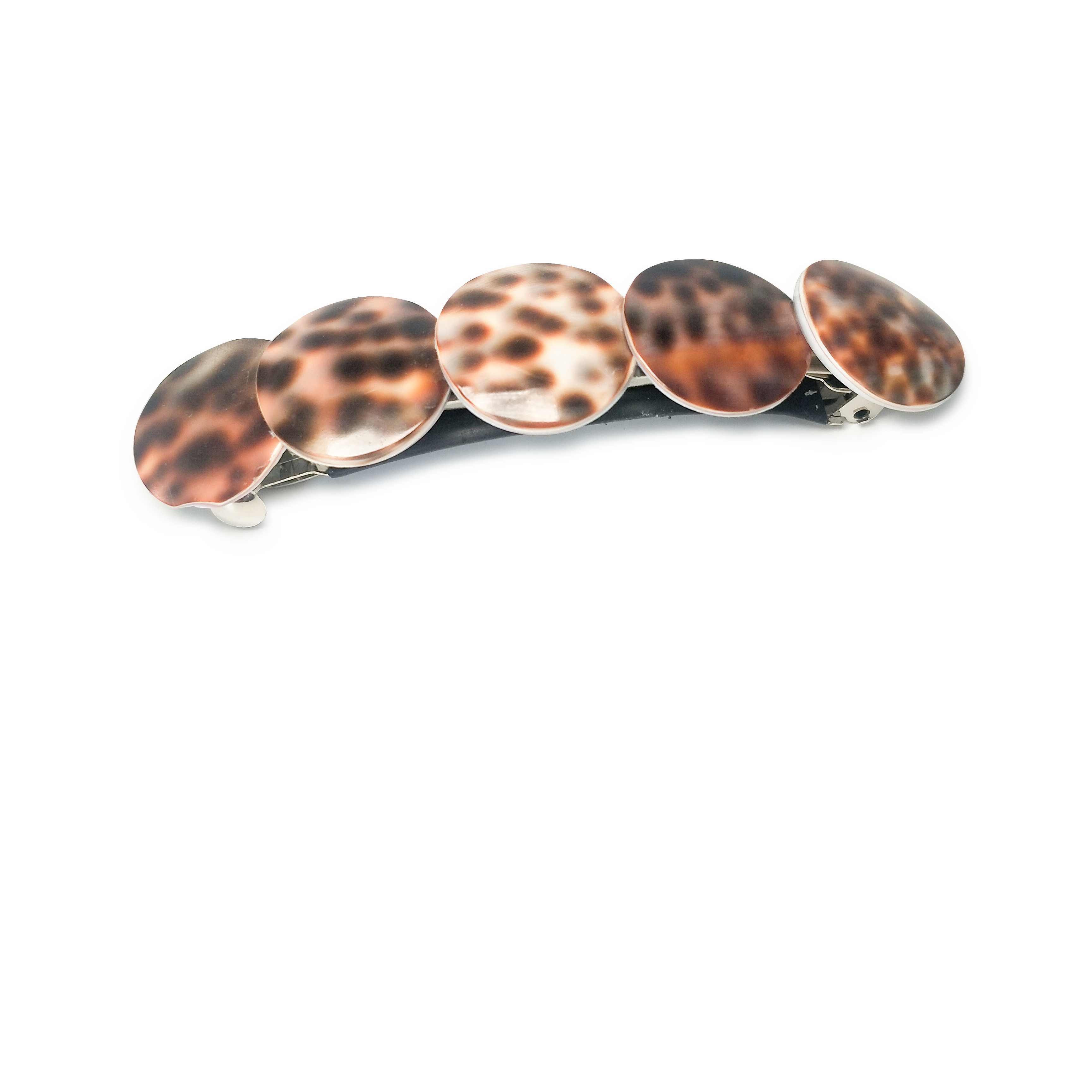 The Cowrie Shell Barrette Clip is a super sized statement clip handmade from real shell pieces.
